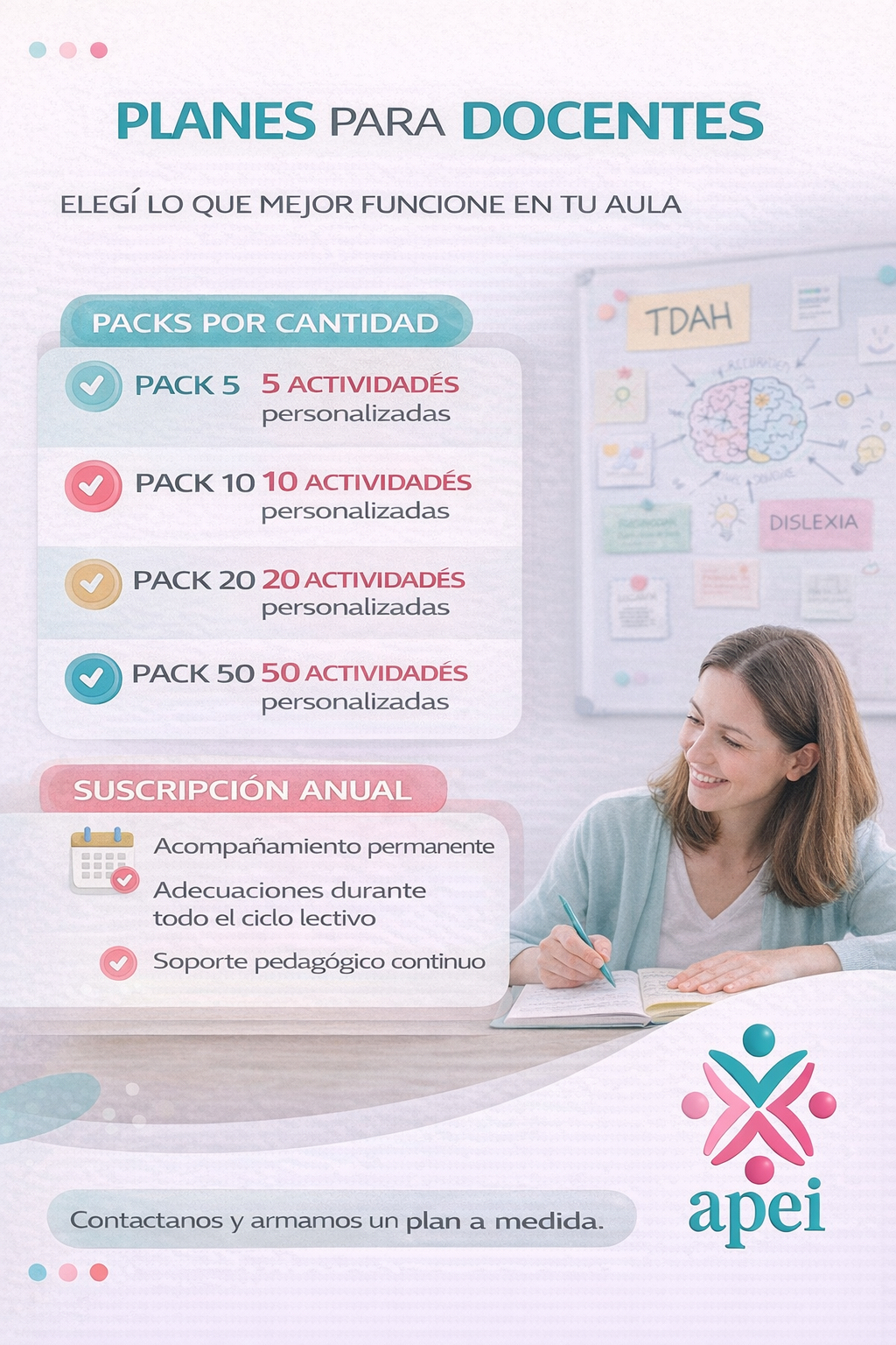 • Hasta 15 adecuaciones mensuales, diseñadas a partir de tu planificación y de las necesidades reales de tus estudiantes.